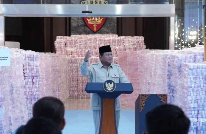 Prabowo melanjutkan, uang yang ditampilkan dalam kesempatan itu hanya sebagian kecil dari potensi aset negara yang masih bisa diselamatkan.