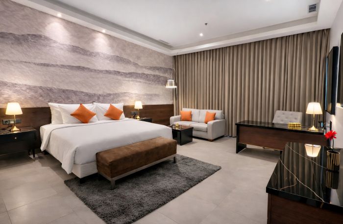 Tampilan salah satu room mewah berstandar bintang lima yang dipersembahkan Wyndham Casablanca Jakarta sebagai sarana belajar mahasiswa IPTI, Jakarta.