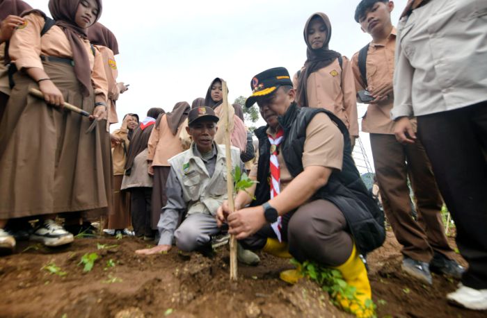 Libatkan Pramuka, Lahan 100 Hektar di Hulu Sungai Citarum Mulai Ditanami Ribuan Pohon