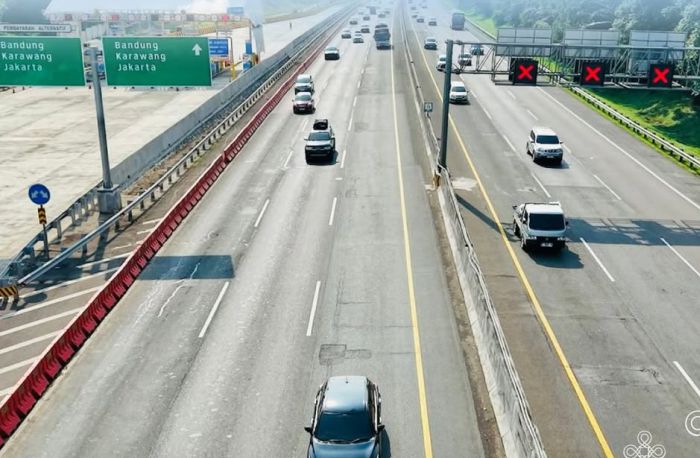 Jumlah distribusi ke berbagai arah tersebut memang variatif. Jumlah tertinggi adalah menuju ke arah timur melalui gate tol Cikampek Utama, yakni trans Jawa sebanyak 909.620 kendaraan, naik 64,5 persen.